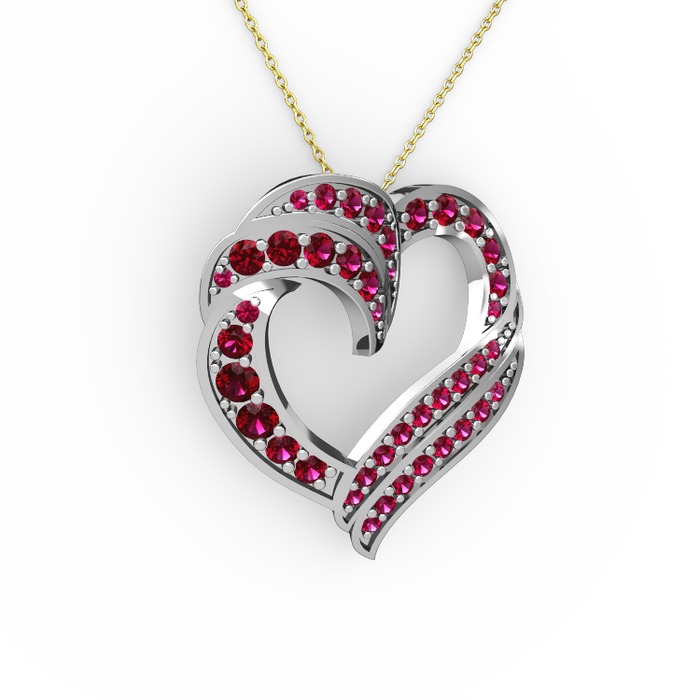 Rodolit garnet 8 ayar beyaz altın kolye (40 cm gümüş rolo zincir)