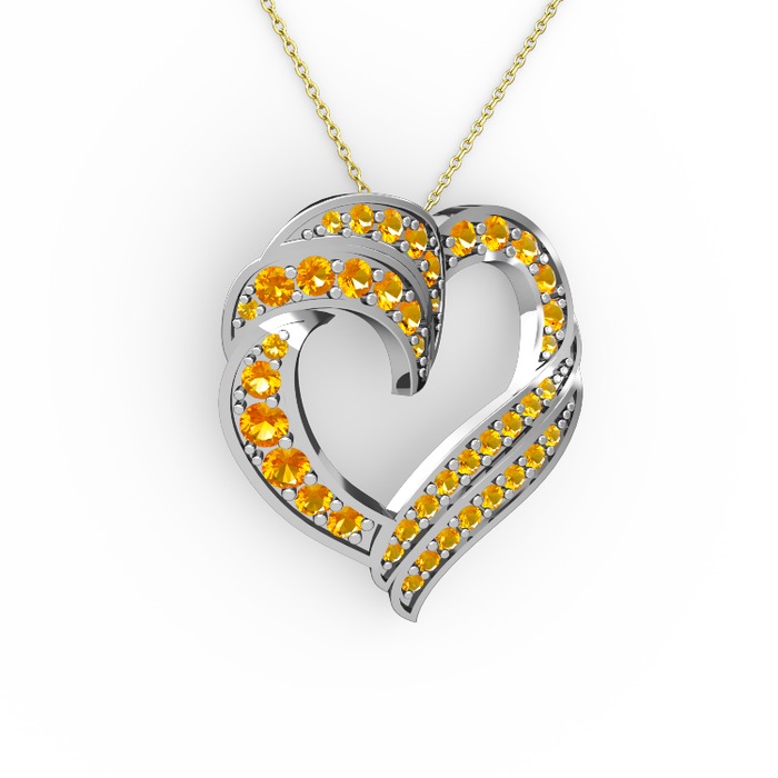 Sitrin 14 ayar beyaz altın kolye (40 cm altın rolo zincir)