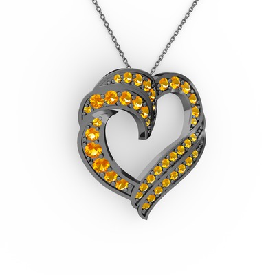 Sitrin 925 ayar siyah rodyum kaplama gümüş kolye (40 cm gümüş rolo zincir)
