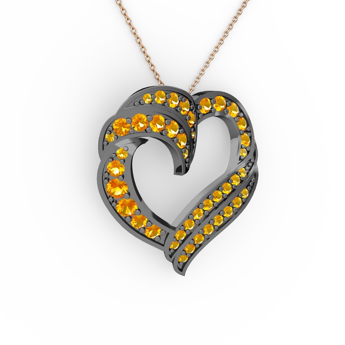 Sitrin 925 ayar siyah rodyum kaplama gümüş kolye (40 cm gümüş rolo zincir)