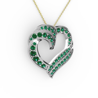 Yeşil kuvars 14 ayar beyaz altın kolye (40 cm altın rolo zincir)