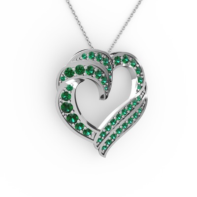 Yeşil kuvars 14 ayar beyaz altın kolye (40 cm beyaz altın rolo zincir)