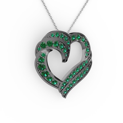 Yeşil kuvars 925 ayar siyah rodyum kaplama gümüş kolye (40 cm beyaz altın rolo zincir)