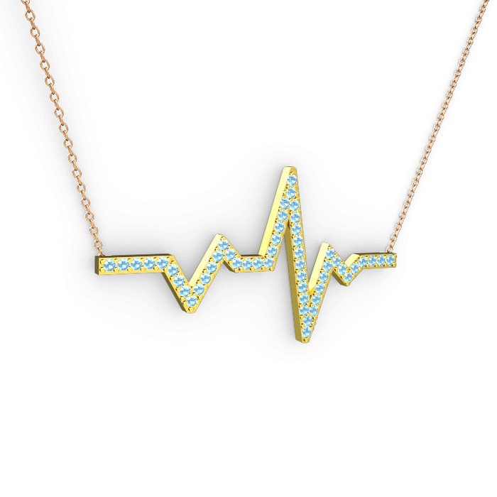 Akuamarin 18 ayar altın kolye (40 cm rose altın rolo zincir)