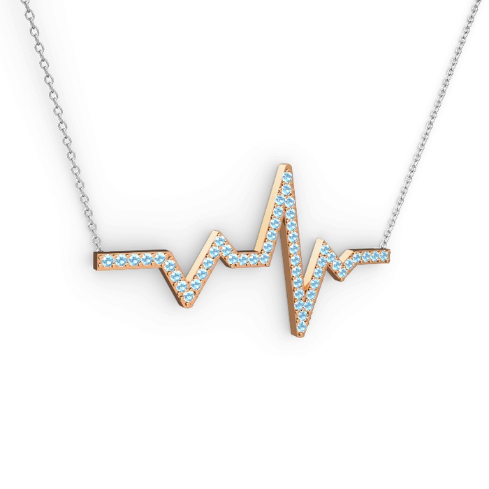 Akuamarin 18 ayar rose altın kolye (40 cm beyaz altın rolo zincir)