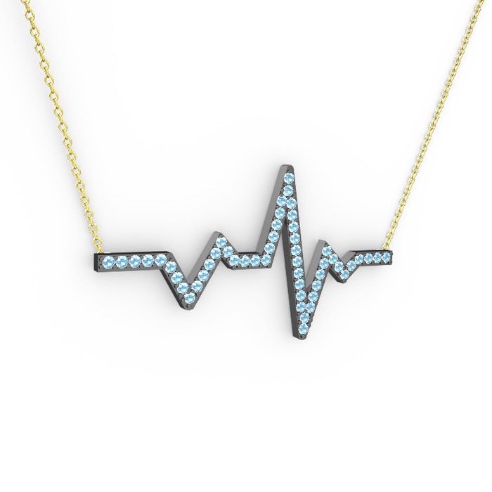 Akuamarin 925 ayar siyah rodyum kaplama gümüş kolye (40 cm altın rolo zincir)