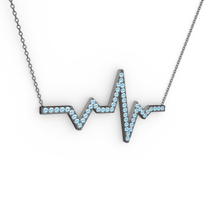 Akuamarin 925 ayar siyah rodyum kaplama gümüş kolye (40 cm gümüş rolo zincir)