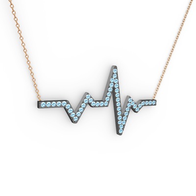 Akuamarin 925 ayar siyah rodyum kaplama gümüş kolye (40 cm rose altın rolo zincir)