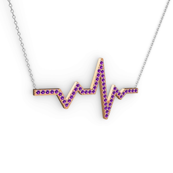 Ametist 8 ayar rose altın kolye (40 cm beyaz altın rolo zincir)