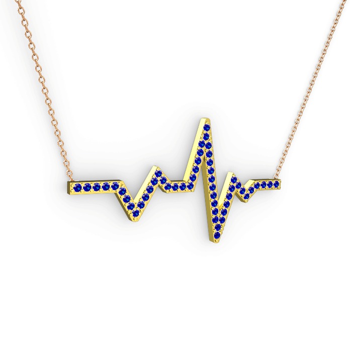 Lab safir 14 ayar altın kolye (40 cm rose altın rolo zincir)