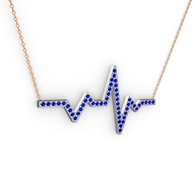 Lab safir 8 ayar beyaz altın kolye (40 cm rose altın rolo zincir)