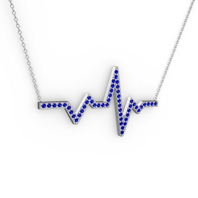 Kalp Ritmi Kolye - Lab safir 925 ayar gümüş kolye (40 cm gümüş rolo zincir)