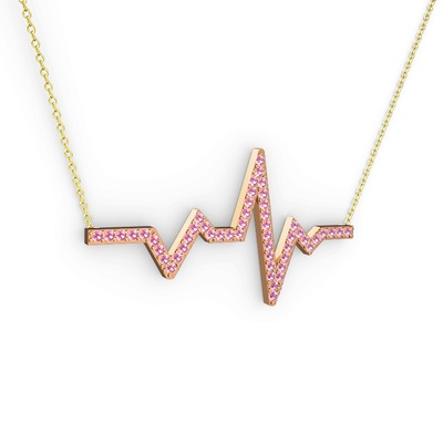 Pembe kuvars 14 ayar rose altın kolye (40 cm gümüş rolo zincir)