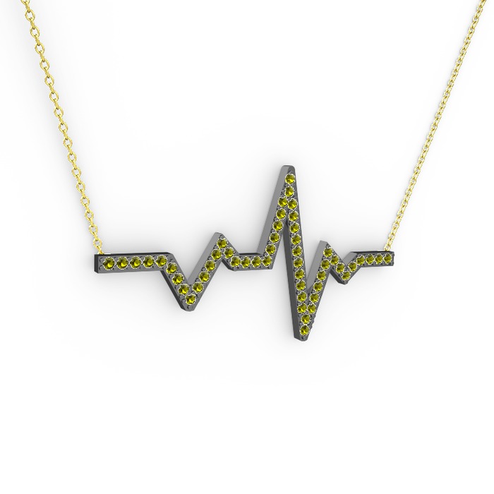 Peridot 925 ayar siyah rodyum kaplama gümüş kolye (40 cm gümüş rolo zincir)