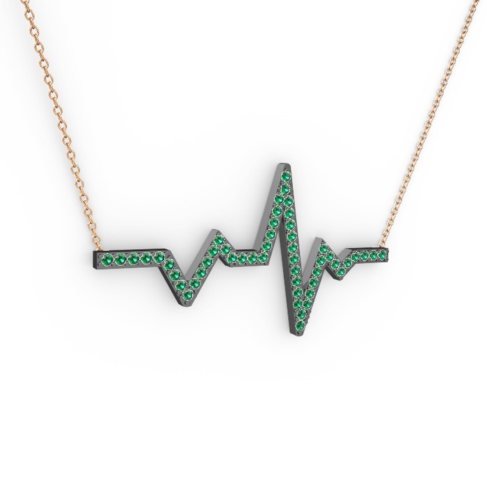 Yeşil kuvars 925 ayar siyah rodyum kaplama gümüş kolye (40 cm rose altın rolo zincir)