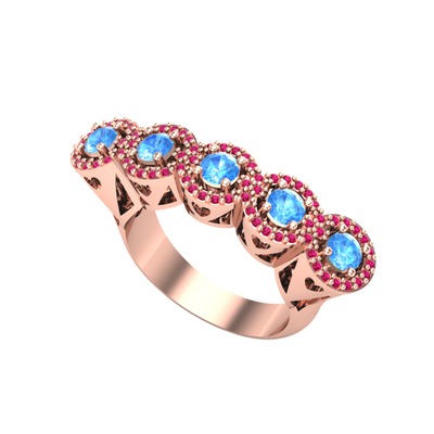 Akuamarin ve rodolit garnet 18 ayar rose altın yüzük