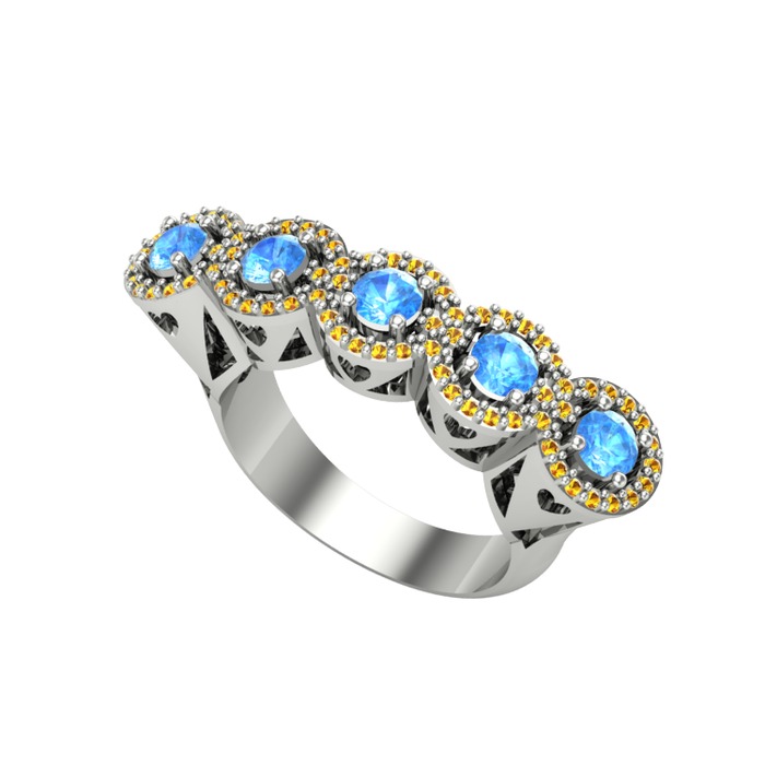 Akuamarin ve sitrin 14 ayar beyaz altın yüzük