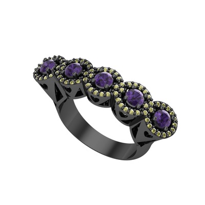 Ametist ve peridot 925 ayar siyah rodyum kaplama gümüş yüzük