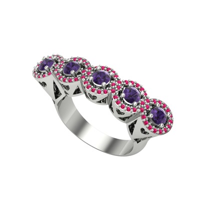 Ametist ve rodolit garnet 14 ayar beyaz altın yüzük