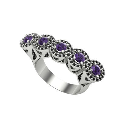 Ametist ve siyah zirkon 18 ayar beyaz altın yüzük