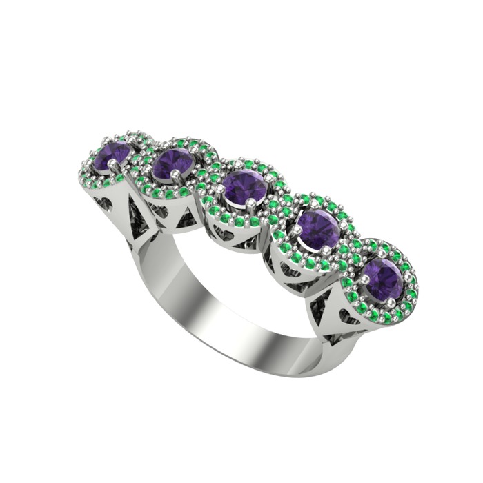 Ametist ve yeşil kuvars 925 ayar gümüş yüzük