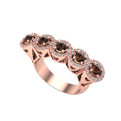 Dumanlı kuvars ve pırlanta 8 ayar rose altın yüzük (0.6 karat)