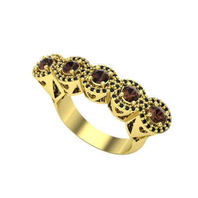 Dumanlı kuvars ve siyah zirkon 925 ayar altın kaplama gümüş yüzük