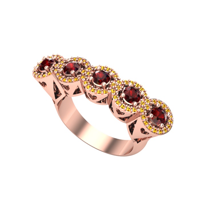 Garnet ve sitrin 14 ayar rose altın yüzük
