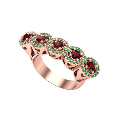 Garnet ve yeşil kuvars 8 ayar rose altın yüzük