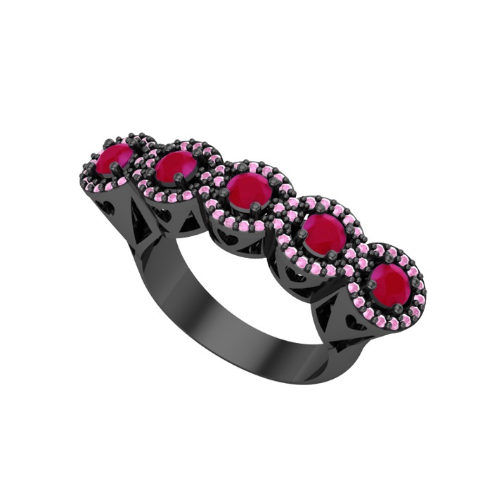 Kök yakut ve pembe kuvars 925 ayar siyah rodyum kaplama gümüş yüzük