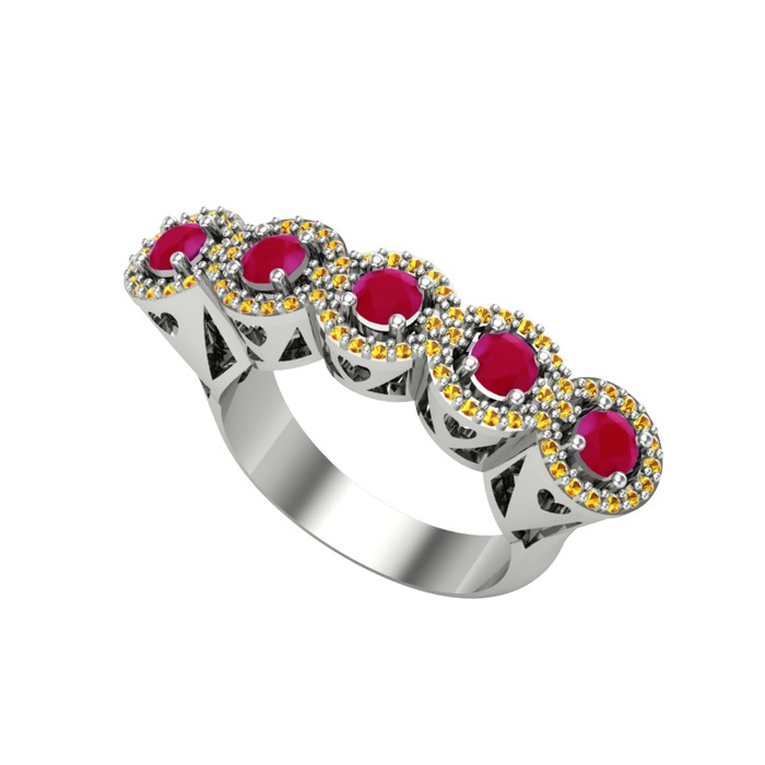 Kök yakut ve sitrin 8 ayar beyaz altın yüzük