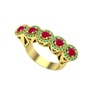 Kök yakut ve yeşil kuvars 925 ayar altın kaplama gümüş yüzük