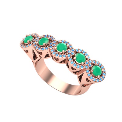 Kök zümrüt ve akuamarin 18 ayar rose altın yüzük