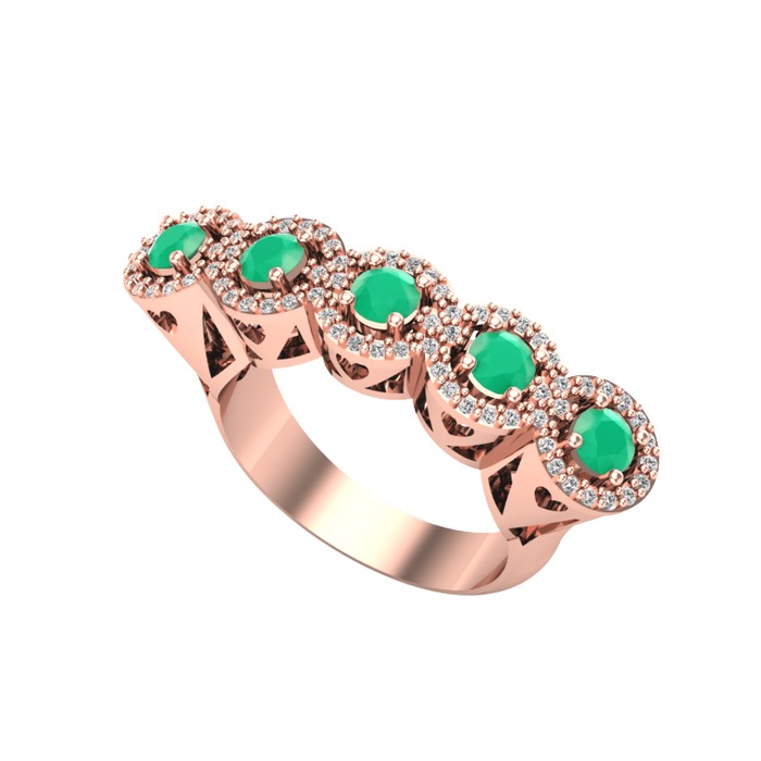 Kök zümrüt ve beyaz zirkon 18 ayar rose altın yüzük