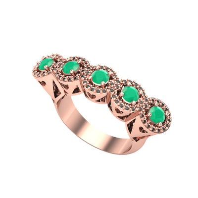 Kök zümrüt ve dumanlı kuvars 18 ayar rose altın yüzük