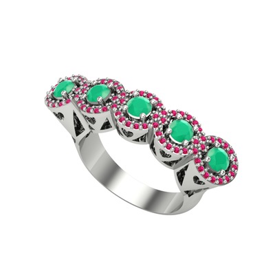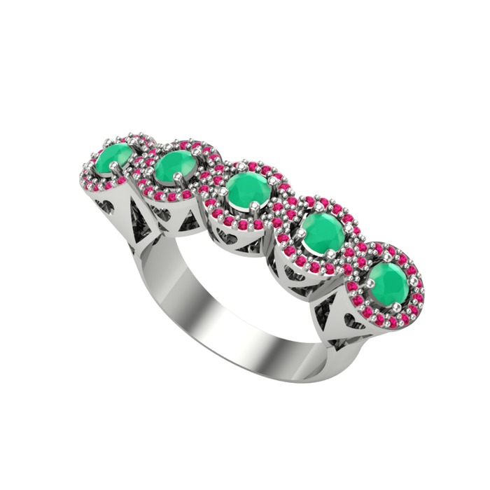 Kök zümrüt ve rodolit garnet 14 ayar beyaz altın yüzük