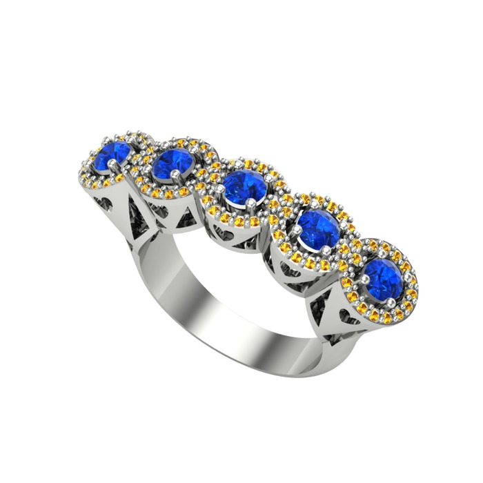 Lab safir ve sitrin 18 ayar beyaz altın yüzük