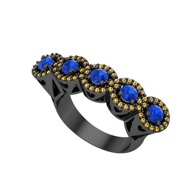 Lab safir ve sitrin 925 ayar siyah rodyum kaplama gümüş yüzük