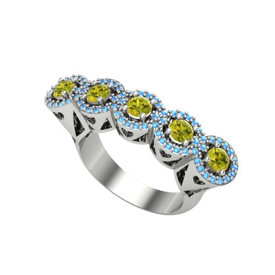 Peridot ve akuamarin 14 ayar beyaz altın yüzük