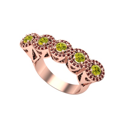 Peridot ve garnet 8 ayar rose altın yüzük