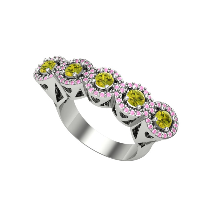 Peridot ve pembe kuvars 8 ayar beyaz altın yüzük