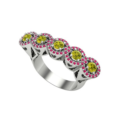 Peridot ve rodolit garnet 925 ayar gümüş yüzük