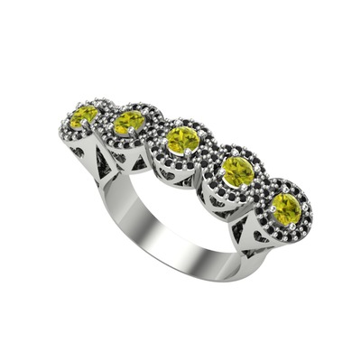 Peridot ve siyah zirkon 14 ayar beyaz altın yüzük