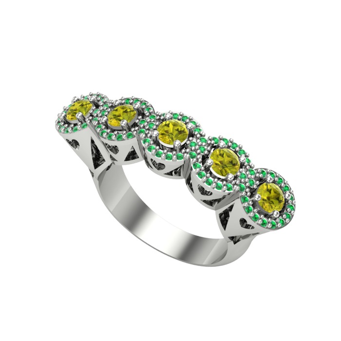 Peridot ve yeşil kuvars 14 ayar beyaz altın yüzük