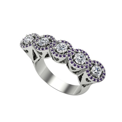 Pırlanta ve ametist 8 ayar beyaz altın yüzük (0.7 karat)