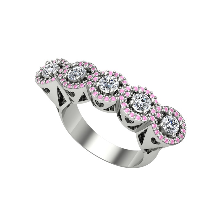 Pırlanta ve pembe kuvars 8 ayar beyaz altın yüzük (0.7 karat)