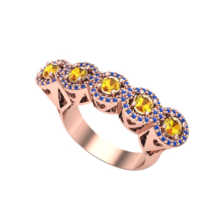Sitrin ve lab safir 18 ayar rose altın yüzük