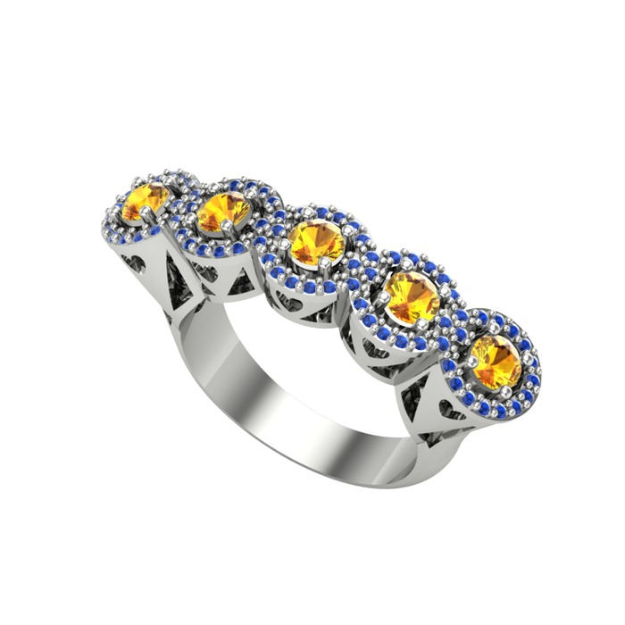 Sitrin ve lab safir 8 ayar beyaz altın yüzük