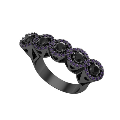 Siyah zirkon ve ametist 925 ayar siyah rodyum kaplama gümüş yüzük