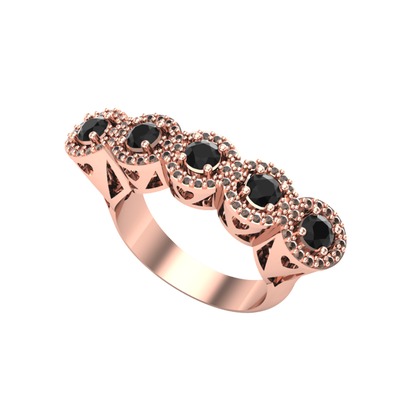Siyah zirkon ve dumanlı kuvars 925 ayar rose altın kaplama gümüş yüzük